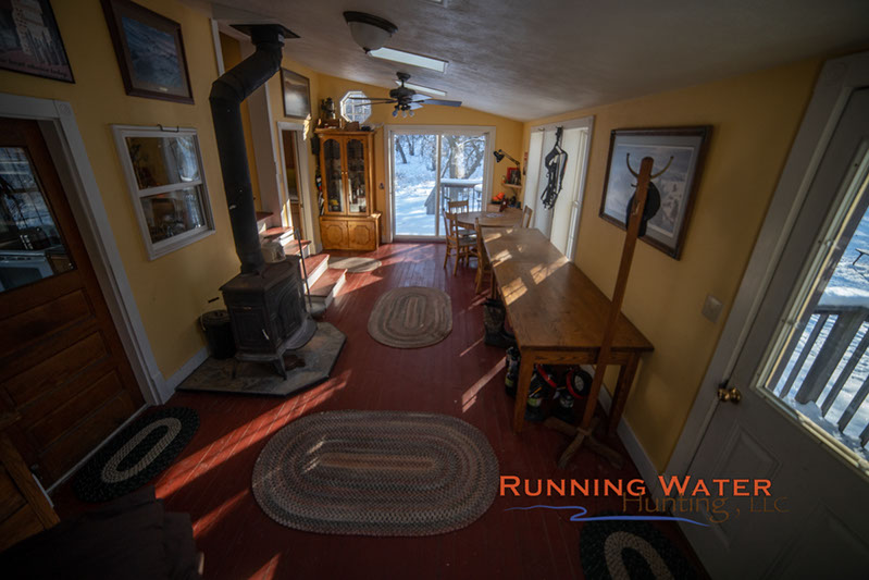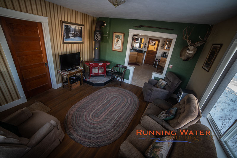 Our lodge is a comfortable cozy house located on the river in the middle of the ranch. The lodge is fully furnished and can accommodate up to 6 hunters although we prefer groups of 4. The house is comfortable with a full kitchen, bathroom with shower, regular beds with all fresh bedding provided, propane and wood heat, gun range and satellite television. We are about 15-20 minutes from our closest town of Rushville with a couple of restaurants, convenient store and basic groceries. Other grocery and restaurant options are located 45 minutes to an hour from the ranch.